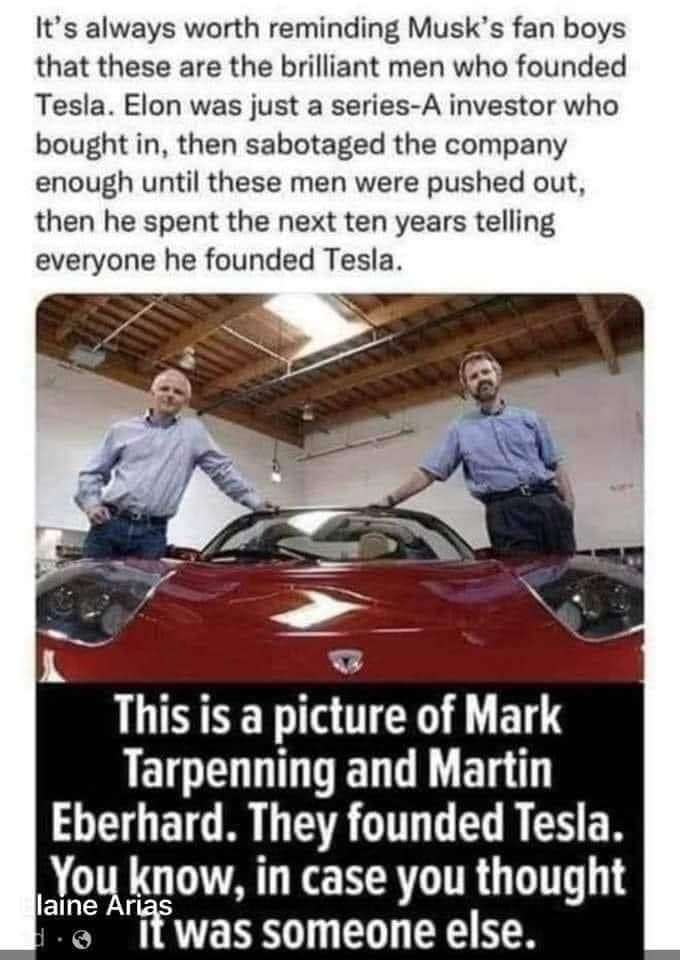 #Musk was not the founder of #Tesla! He is just another history #revisionist who wants to make his lie your truth…